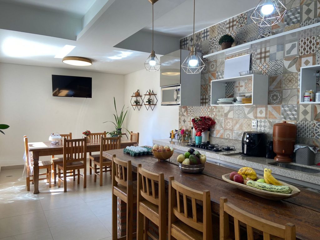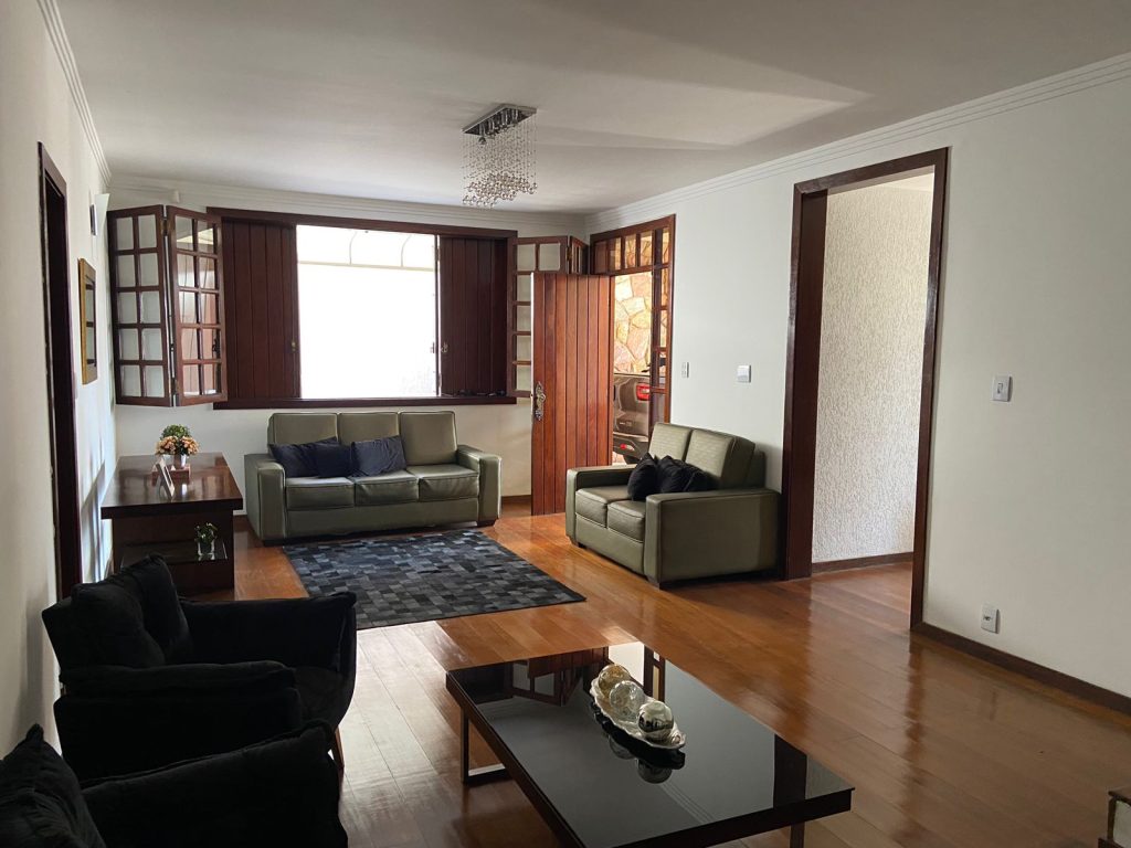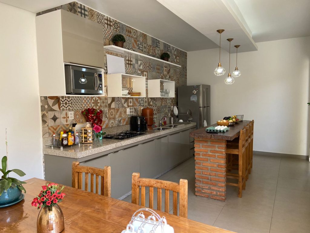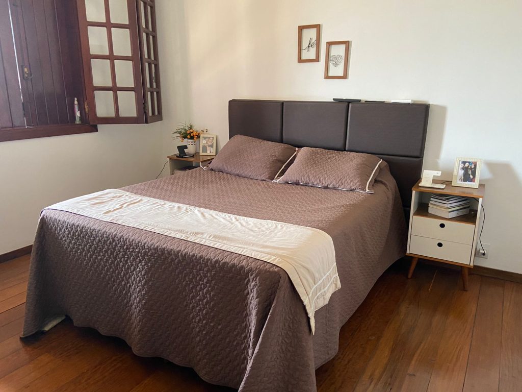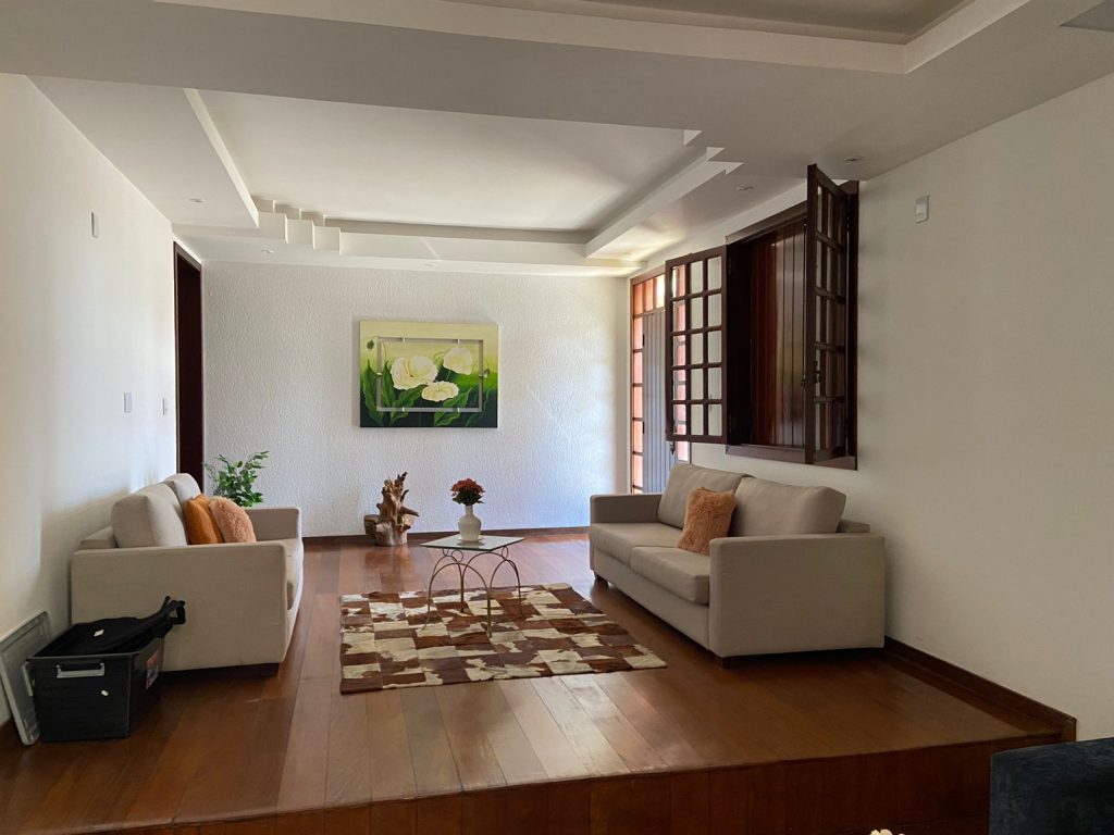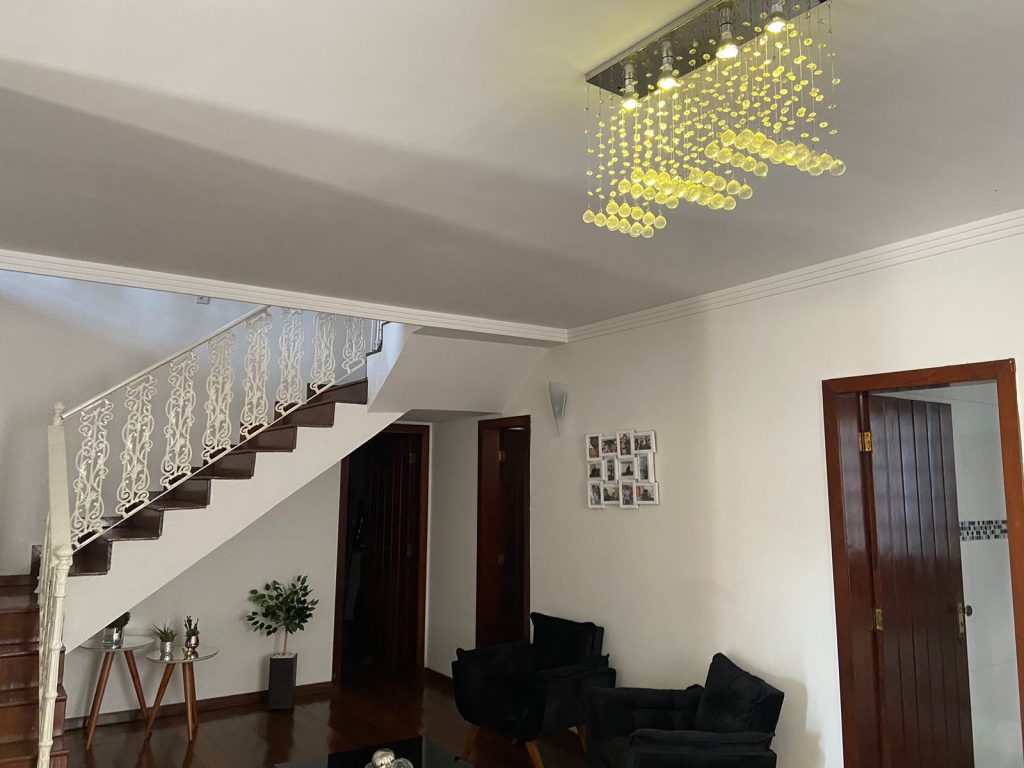 1º Piso – sala de estar; sala de jantar (rebaixamento de teto); lavado, 01 quarto (pisos em tabua corrida maciça); cozinha espaçosa com armários planejados e com mesa fixa em granito; área de serviço; lavanderia e dependência completa de empregada; área gourmet completa com churrasqueira, mesa de madeira de demolição; banheiro e área livre descoberta. 2º Piso – Escada em alvenaria revestida em madeira maciça; 01 varanda; 04 quartos com suítes (com armários planejados), sendo uma suíte master, com closet e banheira de hidromassagem.