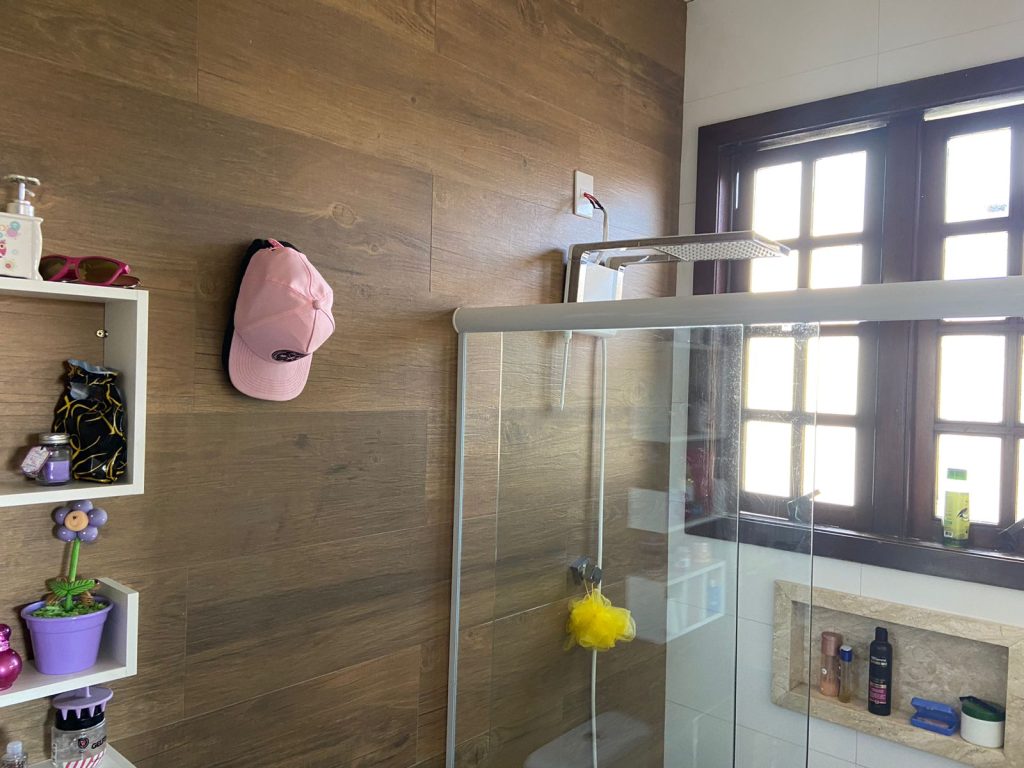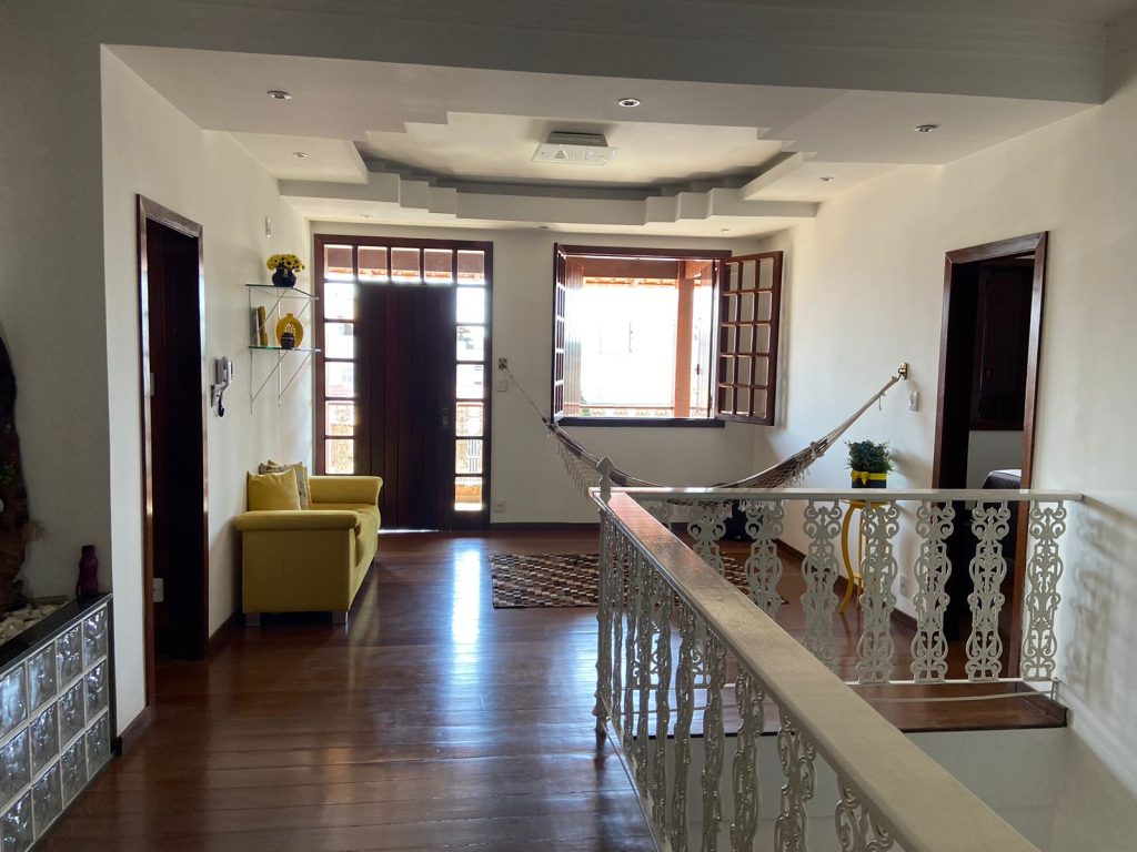 Casa estilo colonial, sob pilotis, com 02 pavimentos. Gradeada, jardinada, portão eletrônico, todas as portas e janelas são em madeira maciça com blecaute. Interfone com câmera; sistema de alarme; ar condicionado e 04 vagas de garagens cobertas.