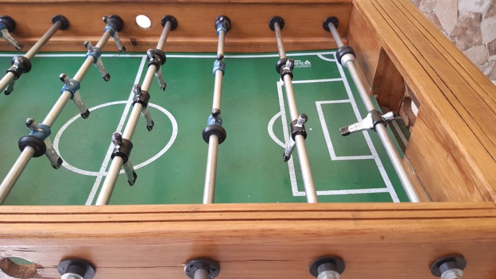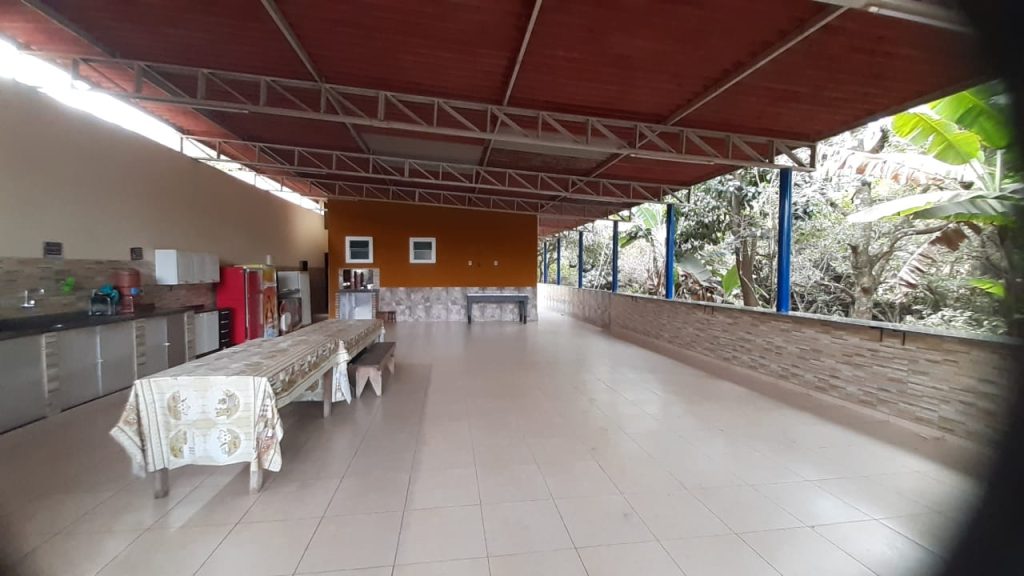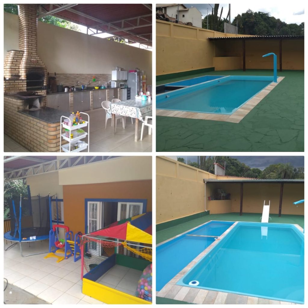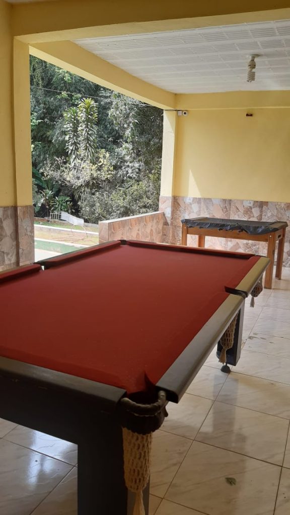 Área de lazer com 03 piscinas, play kids, sinuca, totó, área gourmet piso cerâmico, com churrasqueira, fogão a lenha, fogão a gás, pia e bancada de apoio em pedra granito.