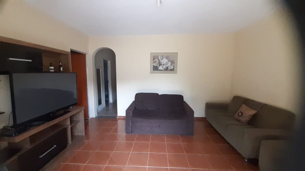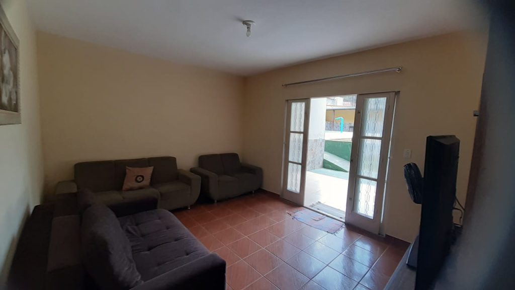 Segunda casa com três quartos, piso cerâmico nos quartos e sala sendo 01 suite, banheiro banho social, cozinha, área de tanque.