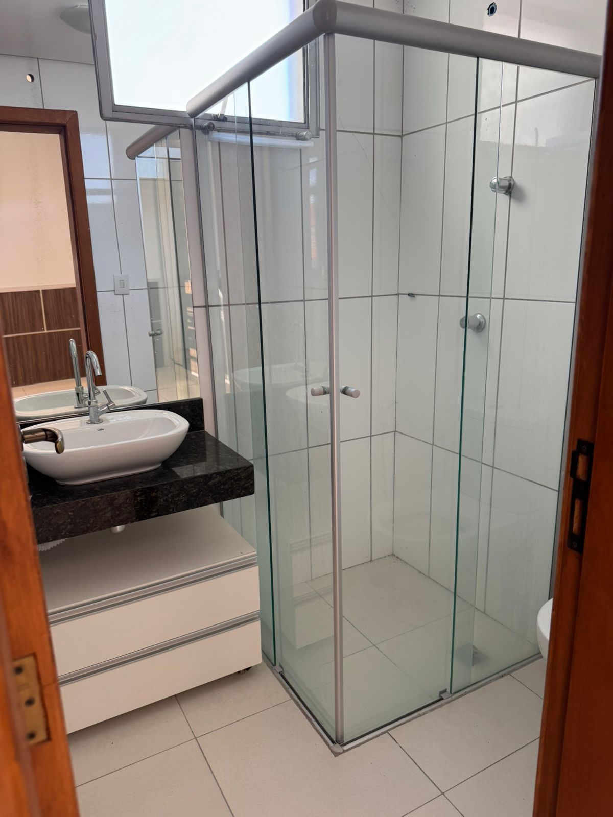 APARTAMENTO 03 QUARTOS COM ARMÁRIOS E PERSIANAS, CLOSET, SUÍTE COM BOX VIDRE TEMPERADO, ARMÁRIO, SALA P/ DOIS AMBIENTES COM LUSTRES, PISO PORCELANATO, BAHNO SOCIAL COM BOX E ARMÁRIO, COZINHA COM ARMÁRIOS E ESTILO AMERICANA, ÁREA DE SERVIÇO COM PORTA VIDRO E BANHEIRO, ESPERA DE AR CONDICIONADO.